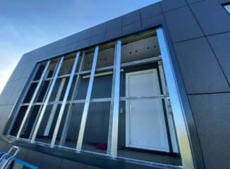 De verticalen worden door Vidiled geplaatst om later de LEDpanelen tegen aan te monteren.